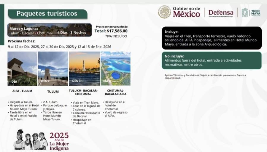 El director general del Tren Maya, Óscar David Lozano Águila, dio a conocer la oferta de 20 paquetes turísticos para el mes de diciembre, como parte de la estrategia del proyecto para impulsar el turismo en el sureste del país.