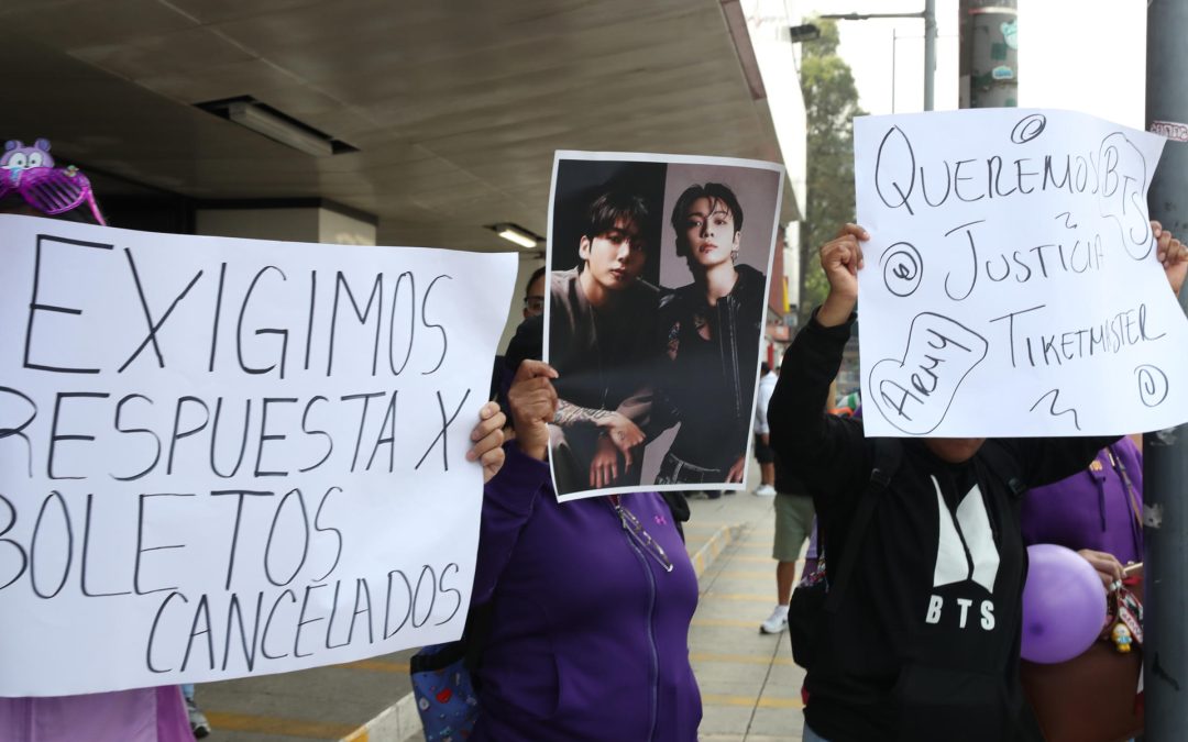 Seguidores del popular grupo de k-pop BTS se manifestaron este viernes en Ciudad de México para exigir claridad ante lo que consideran “abusos” de la empresa Ticketmaster en la venta de boletos, un proceso en el que aseguran “faltó transparencia”.