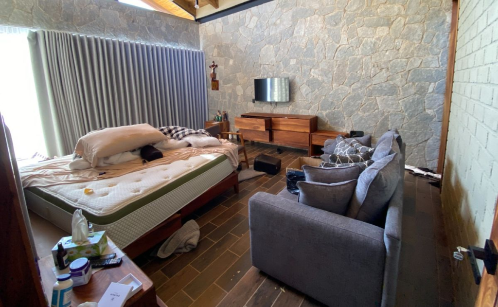 La planta alta de la cabaña se compone de tres recámaras con muebles de lujo, en las que había ropa y múltiples cobertores dentro de sus cubiertas de plástico.