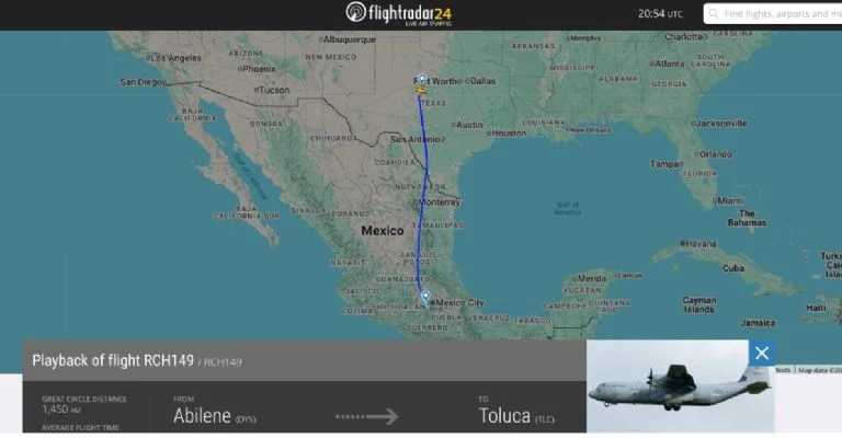 De acuerdo con la plataforma Flightradar 24, la aeronave identificada como RCH149 despegó alrededor del mediodía del sábado de la Base de la Fuerza Aérea Dyess, en Abilene, Texas.