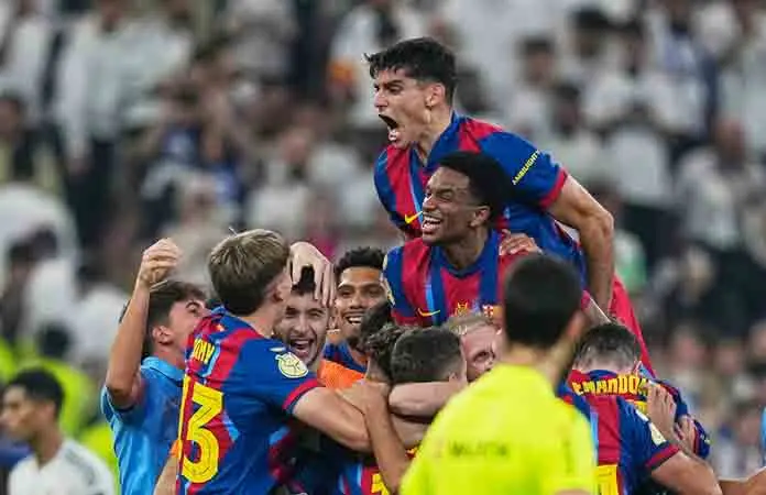 Raphinha anotó dos veces en Arabia Saudí y el Barcelona venció el domingo 3-2 al Real Madrid en la final de la Supercopa de España.