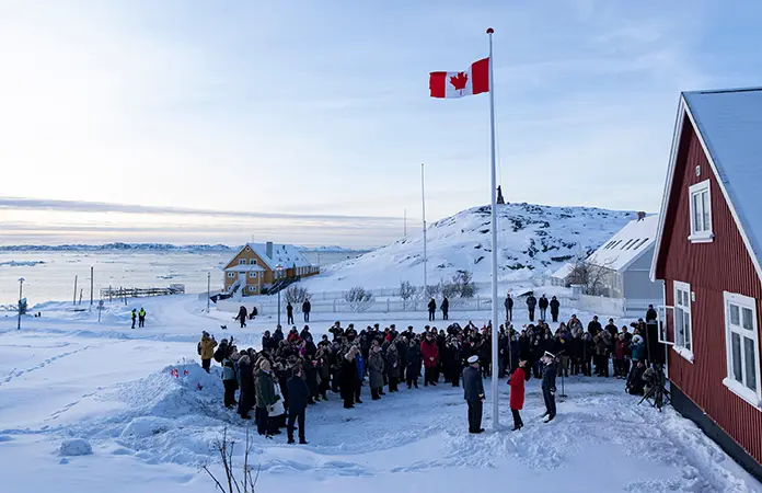 La bandera de Canadá se izó y decenas de personas cantaron «O Canada» mientras la ministra de Relaciones Exteriores, Anita Anand, inauguraba oficialmente el consulado canadiense en Nuuk, que también es la ciudad más grande de la helada isla ártica.