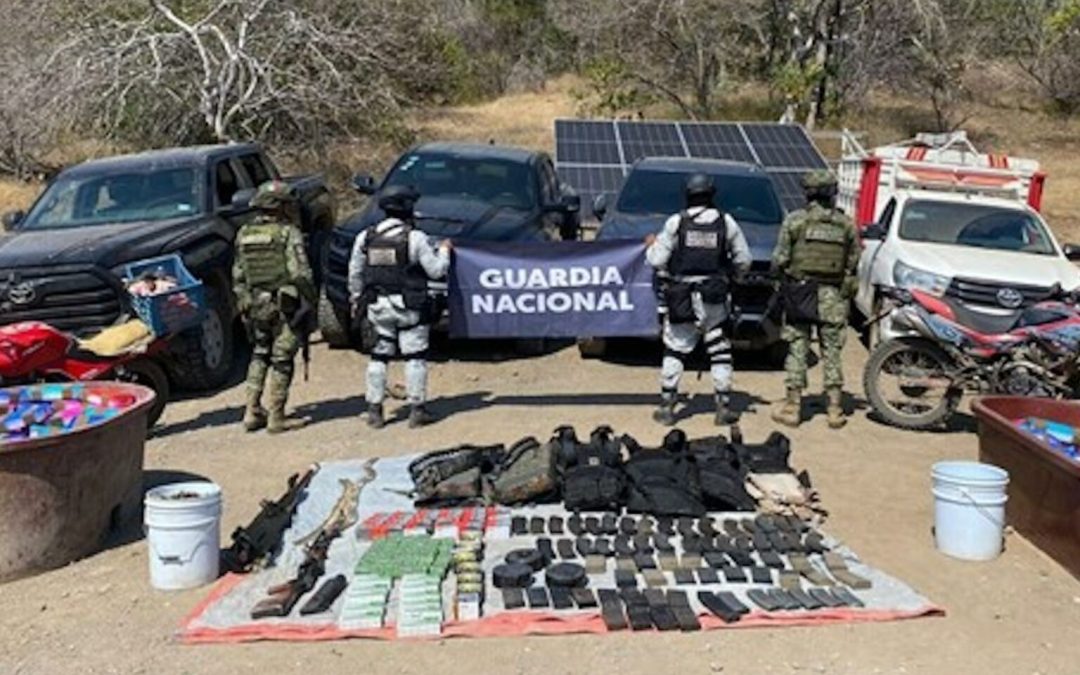 Elementos de la Guardia Nacional y el Ejército mexicano aseguraron en dos eventos distintos un arsenal y 330 kilogramos de droga sintética en la localidad Las Trincheras, ubicado municipio de Huetamo, Michoacán.