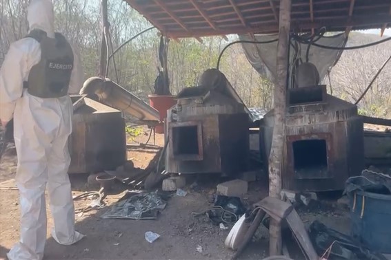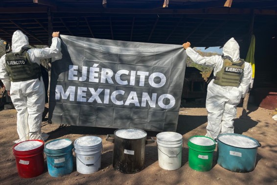 MORELIA, MICH. 05 12 2025.- Otro exitoso operativo realizado por las tareas de inteligencia militar llevó a las Fuerzas Federales a localizar y desmantelar otro laboratorio clandestino para elaborar drogas sintéticas en dos municipios de Michoacán, asegurando todas las substancias y equipo que se requieren para producir las metanfetaminas.