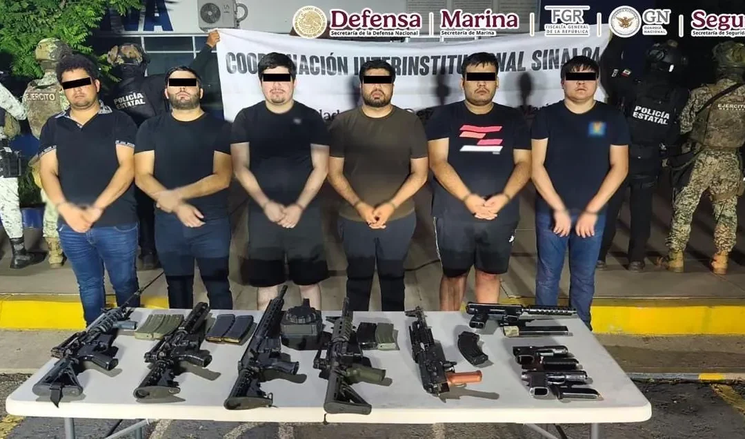 “En Culiacán, Sinaloa, en una operación estratégica de las Secretarías de Seguridad de Sinaloa y de Defensa Nacional fueron detenidos 6 integrantes de una célula criminal vinculada con homicidios, narcotráfico, privación ilegal de la libertad y agresiones armadas. Se aseguraron 8 armas de fuego”, expuso en sus redes sociales el secretario de Seguridad y Protección Ciudadana (SSPC), Omar García Harfuch.