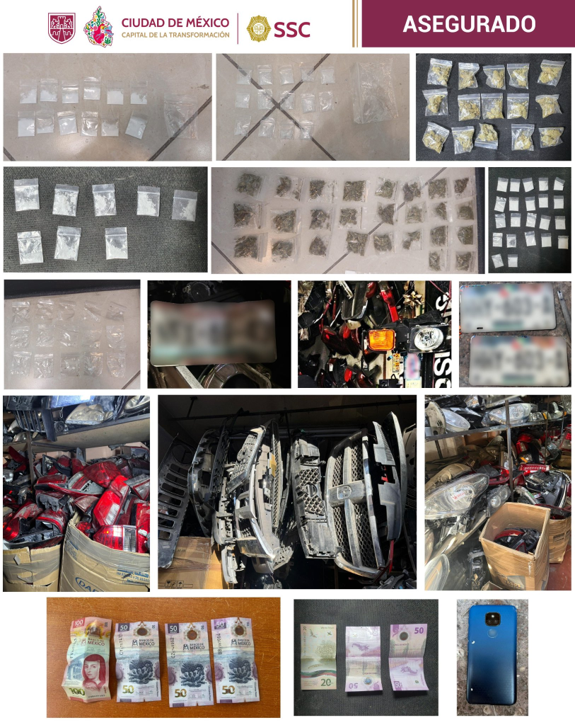 En el primer domicilio se aseguraron cinco toneladas de autopartes, placas de circulación con reporte de robo y un equipo celular. Allí se detuvo a Iván M.