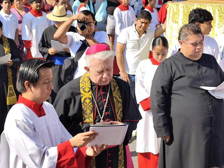 El presidente de la Conferencia del Episcopado Mexicano, Ramón Castro Castro, encabezó este Viernes Santo el viacrucis en el centro de la ciudad, una de las principales expresiones de fe en la capital morelense.