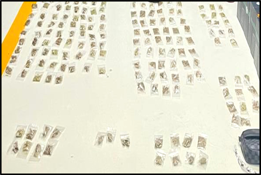 El día 24 en San Quintín, B.C., Guardias Nacionales y militares establecidos en el Puesto de Seguridad “El Rosario”, al inspeccionar un tracto camión que trasladaba galones de aceite biodegradable encontraron 115 kilos de Metanfetamina entre los tambos por lo que detuvieron al chofer y aseguraron la droga sintética.