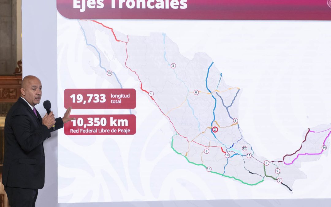 El secretario de Infraestructura, Comunicaciones y Transportes, Jesús Antonio Esteva Medina, explicó que de los 18 mil km que serán intervenidos a través del Programa Nacional de Conservación de Carretera y Bachetón, 7,100 km, el 70%, corresponden a ejes troncales. Detalló que la intervención se dividirá en 5 regiones:
