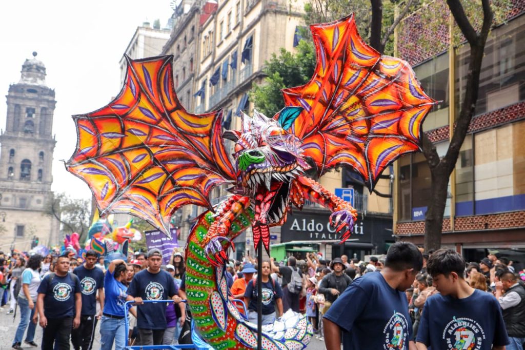 El desfile, organizado por la Secretaría de Cultura de la Ciudad de México y el Museo de Arte Popular (MAP), partió del Zócalo capitalino y avanzó hasta el Ángel de la Independencia, encabezado por la Banda de Música de la Secretaría de Marina y grupos de danza y música tradicional. El ambiente festivo volvió a hacer del evento una de las expresiones más emblemáticas del arte popular mexicano.
