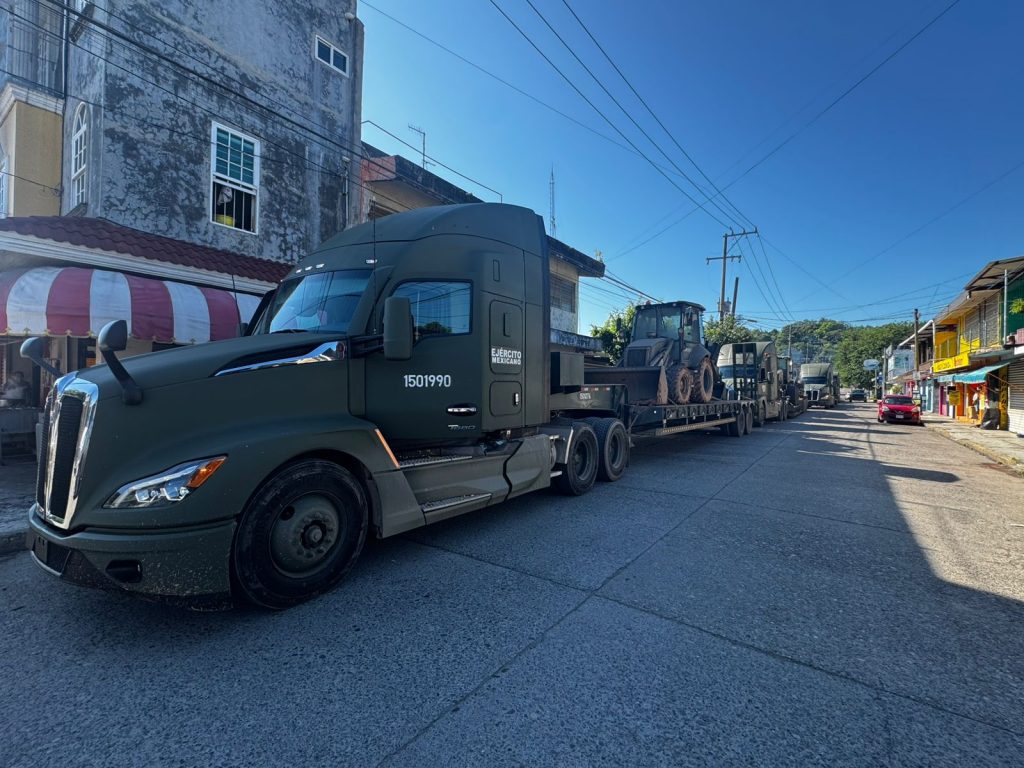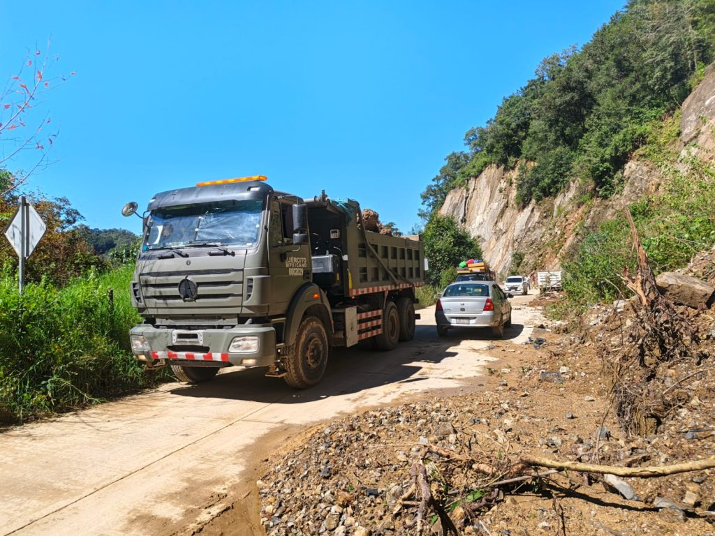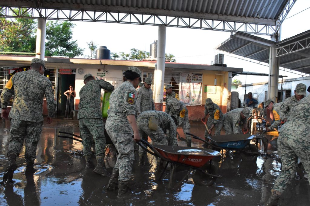 Además, se emplean 2 cocinas móviles, 2 plantas potabilizadoras, 17 unidades de maquinaria pesada, 12 volteos, 1 hospital militar, 45 camiones de 6.5 toneladas y 10 células sanitarias (5 de saneamiento y 5 de vacunación), con las que se han establecido 31 albergues para 1,950 personas, desazolvado 1,290 viviendas y 10 escuelas, retirado 260 árboles y 14,330 m³ de material producto de derrumbes.
