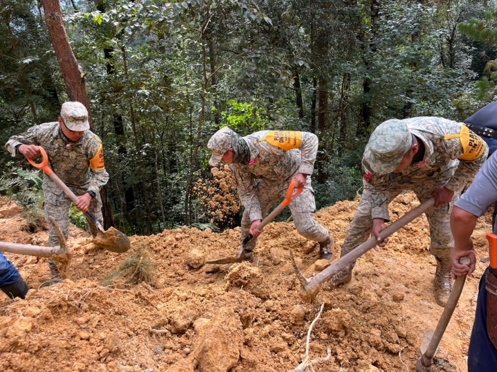Se mantienen desplegados 590 efectivos (330 del Ejército y 260 de la Guardia Nacional), quienes, en coordinación con autoridades locales, han intensificado las acciones del Plan DNIII-E para auxiliar a la población afectada por las lluvias.
