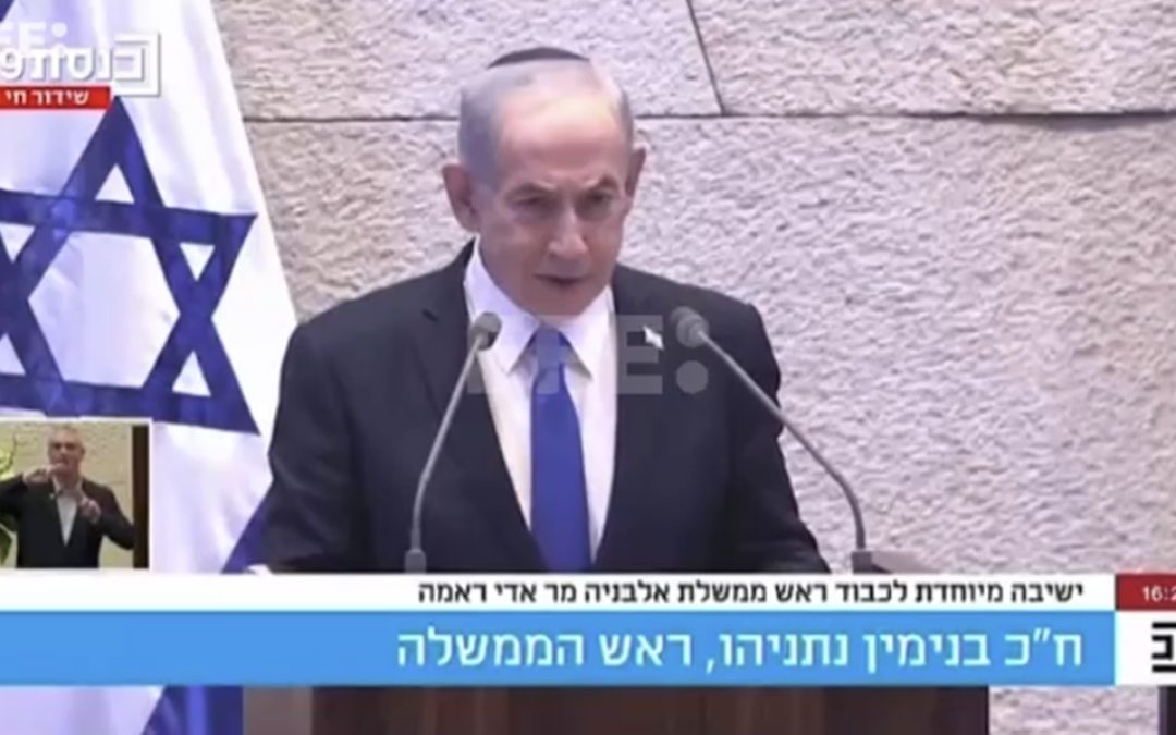 “Mis amigos, compañeros miembros de la Knéset, hace poco devolvimos a Ron Gvili, un héroe de Israel. Ya no hay rehenes en Gaza”, dijo durante una sesión especial en honor del primer ministro albanés, Edi Rama.