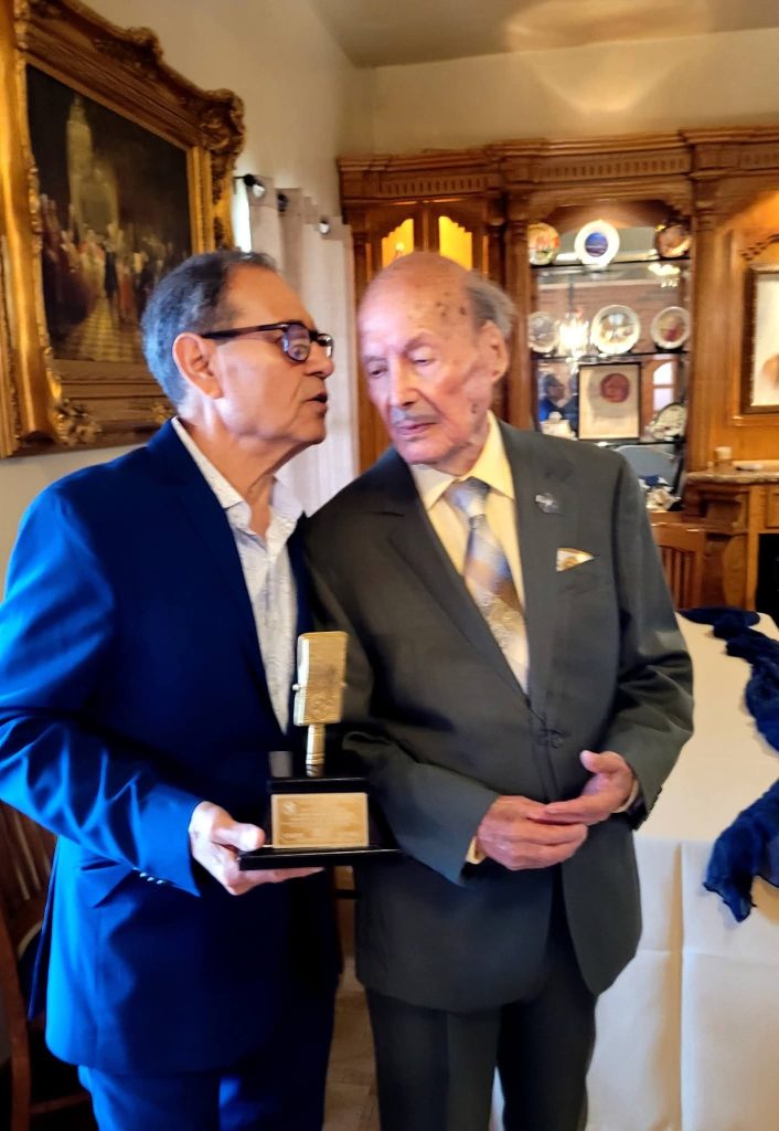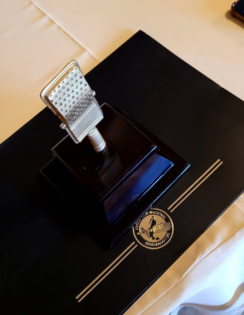 “Por su ejemplo, dedicación y pasión por el Periodismo y la Locución, con una trayectoria de más de 80 años en el medio” dice a la letra la presea signada en la Ciudad de México, por la Presidenta Nacional, la maestra Rosalía Buaún Sánchez; el presidente de la Delegación Tamaulipas, Lic. Mario Ángel Díaz Vargas; la Directora Académica, Lic. Jadira Armendáriz; y el Director Artístico, Lic. Armando H. Portillo.