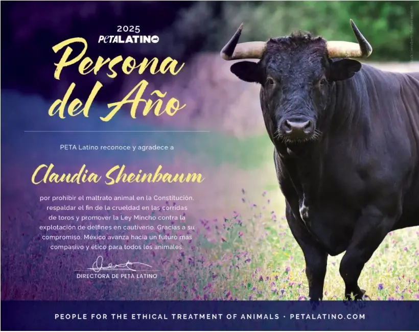 La organización Personas por el Trato Ético de los Animales (PETA, por sus siglas en ingles) en Latinoamérica, nombró este martes a la presidenta Claudia Sheinbaum Pardo, como su “Persona del Año 2025” en reconocimiento a su impulso gubernamental hacia reformas y leyes de protección animal.