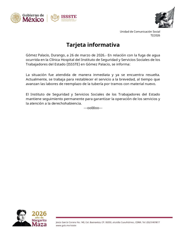Más tarde, el ISSSTE confirmó los hechos en la clínica de Gómez Palacio.