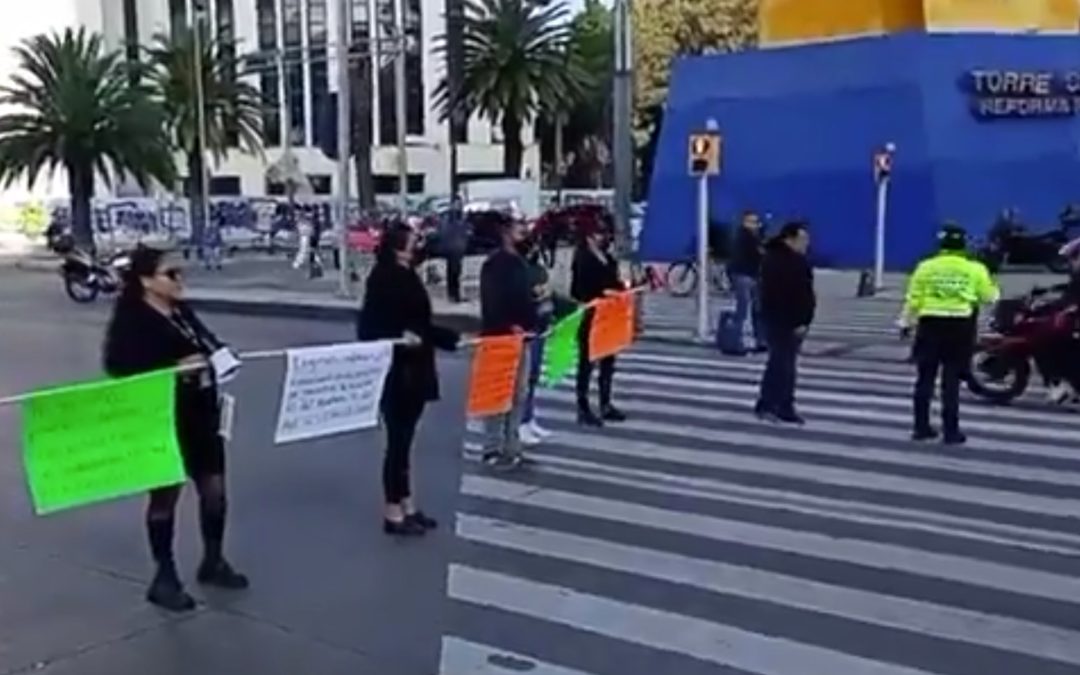 Entre las acciones llevadas a cabo en la Ciudad de México se encuentra un bloqueo en pleno Paseo de la Reforma, justo a la altura de la Torre del Caballito.